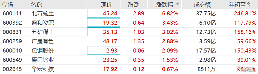 北方稀土涨近7%领涨,盛和资源、五矿稀土、广晟有色等跟涨。