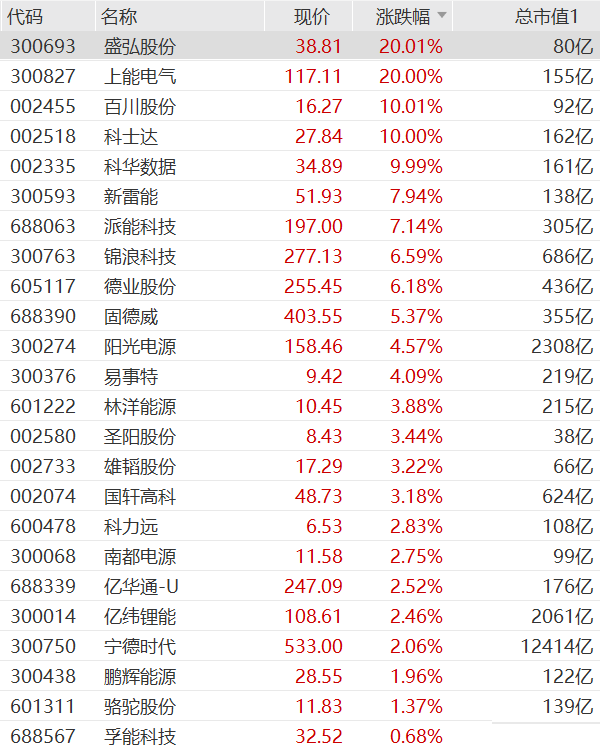 储能板块午后继续走强,盛弘股份、上能电气、百川股份等多股涨停,新雷能、派能科技、锦朗科技等跟涨。