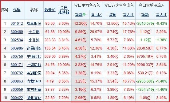主要流向个股 : 附今日十大成交股