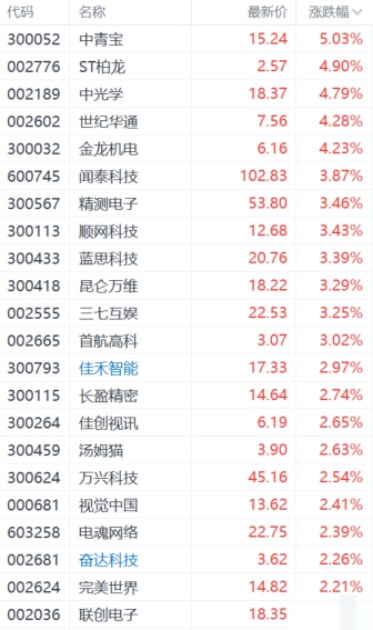虚拟现实概念股临近午间收盘异动拉升,中青宝(300052.SZ)涨超5%,顺网科技、蓝思科技、昆仑万维等涨超3%,佳创视讯、完美世界、汤姆猫等涨超2%。