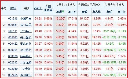主要流向个股 : 附今日十大成交股