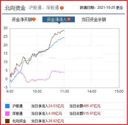 截至午间收盘: 北向资金净流入28.62亿元,其中沪股通资金净流入24.53亿元,深股通资金净流入4.09亿元。