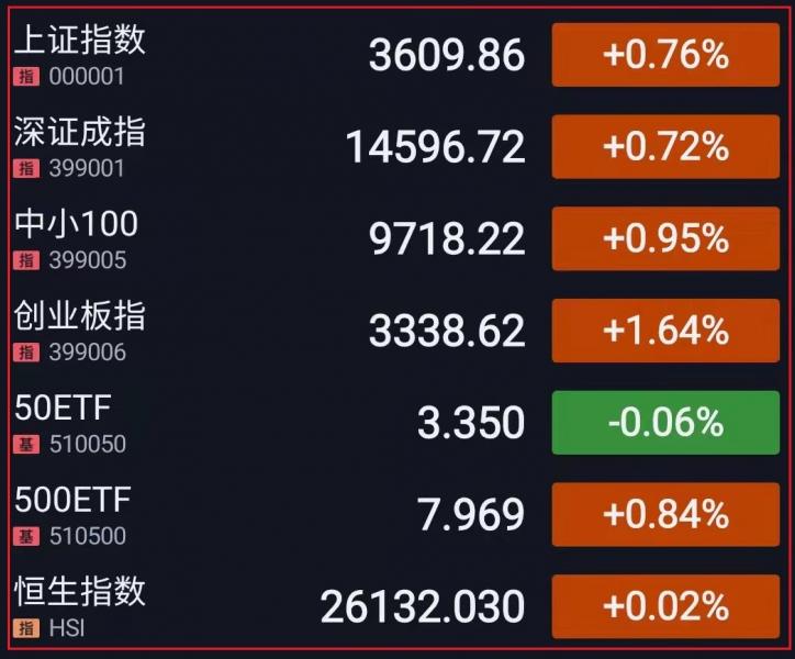 1.三大指数开盘涨跌不一,沪指低开高走,创业板指表现较为强势。板块方面,受利好消息刺激,储能、光伏、风电、锂电等新能源板块集体大涨,燃气、油气开采、煤炭等传统化石能源走强;教育、北交所概念股下挫,房地产、旅游、机场航运等板块走弱。指数午后持续走高,沪指缓步上行,创业板指依旧强势。碳中和相关板块继续走强,元宇宙、军工板块异动拉升;鸿蒙概念、家电板块低迷。总体而言,多空博弈激烈,个股涨跌互现,赚钱效应较好,两市成交额连续第二个交易日突破一万亿元。截止收盘,沪指涨0.76%,深成指涨0.72%,创业板指涨1.64%;