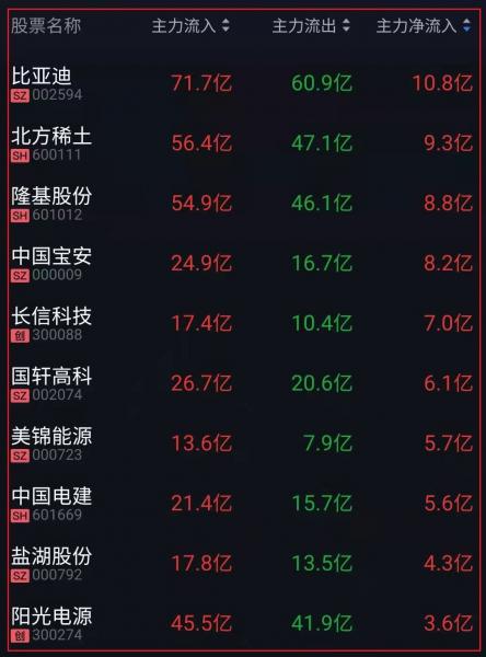 资金净流入十大人气热股:
