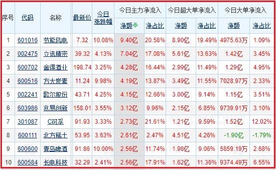 主要流向个股 : 附今日十大成交股
