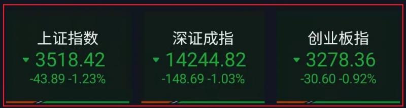 盘面上,小家电、抽水蓄能、网红经济、食品加工等板块涨幅前列,煤炭、油气开采、盐湖提锂、小金属、燃气等板块跌幅居前。截止收盘,沪指跌1.23%,深成指跌1.03%,创业板指跌0.92%。