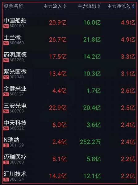 4.北向资金净流入59.41亿元,沪股通和深股通净流入30.12亿元和净流入29.29亿元。外资仍在大肆扫货,在A股积极做多。十大活跃个股方面,净买入额的前三位分别是隆基股份、宁德时代、中国中免,分别获净买入12.95亿元、8.97亿元、6.85亿元。净卖出额居前的是兴业银行、贵州茅台、招商银行,分别被净卖出4.48亿元、3.42亿元、3.26亿元。