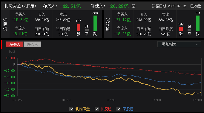资金动向:北向资金7月12日净卖出42.51亿元