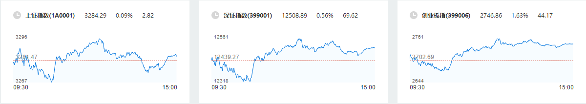 周三A股三大指数开盘涨跌不一,早盘市场先抑后扬,创业板指午前涨幅扩大至1%;午后沪指小幅回落后震荡,创业板指进一步上冲并于高位横盘,A股三大指数均结束了日线连跌的态势,成交量进一步萎缩。