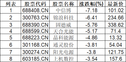 光伏设备板块下挫,中信博(688408.CN)跌7.18%