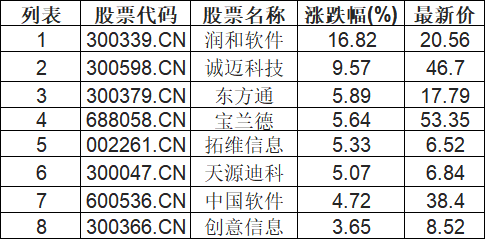 华为欧拉板块拉升,润和软件(300339.CN)涨16.82%