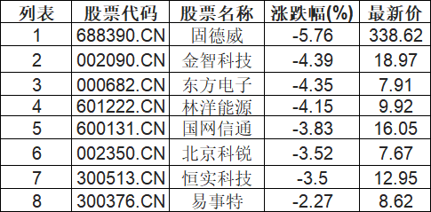 虚拟电厂板块下挫,固德威(688390.CN)跌5.76%