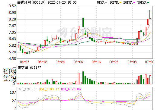 重要资讯:海螺新材(SZ 000619,收盘价:9.15元)7月20日晚间发布公告称,海螺节能环保新材料股份有限公司股票连续2个交易日内(2022年7月19日、2022年7月20日)日收盘价格涨幅偏离值累计超过20%。公司前期披露的信息不存在需要更正、补充之处。