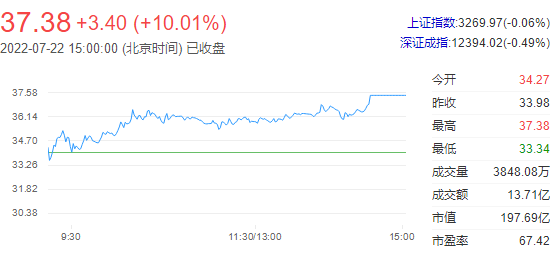 重要资讯:沪深交易所2022年07月22日公布的交易公开信息显示,广东鸿图因成为当日涨幅偏离值达7%的证券上榜。广东鸿图当日收报37.38元,涨跌幅10.01%,偏离值10.38%,换手率7.28%,成交额13.71亿元。