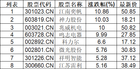 电机板块拉升,江南奕帆(301023.CN)涨10.86%
