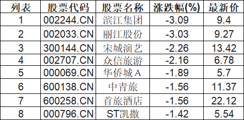 在线旅游板块下挫,滨江集团(002244.CN)跌3.09%