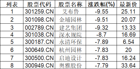 新型城镇化板块下挫,艾布鲁(301259.CN)跌9.55%