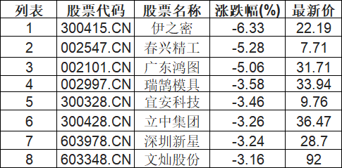 汽车一体化压铸板块低开,伊之密(300415.CN)跌6.33%