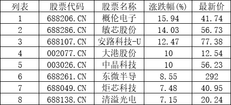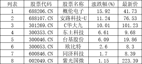 半导体板块拉升,概伦电子(688206.CN)涨15.94%