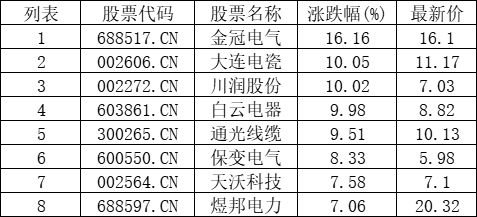 特高压板块拉升,金冠电气(688517.CN)涨16.16%