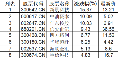 采掘行业板块拉升,中曼石油(603619.CN)涨7.91%