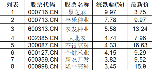 粮食概念板块拉升,黑芝麻(000716.CN)涨9.97%