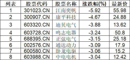 电机板块下挫,江南奕帆(301023.CN)跌5.92%