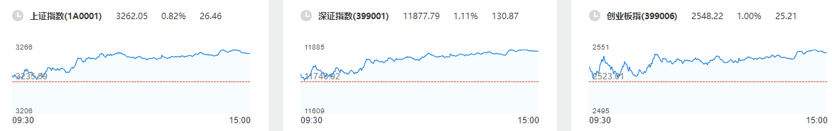 三大指数今日集体拉升,午后均涨约1%,上证50一度涨超2%,权重走强赛道调整。房地产板块明显反弹,并带动家居、家电、建材等相关产业链走强,南山控股、中洲控股、中国武夷等近10股涨停。医药医疗股集体拉升,牙科方向领涨,通策医疗等封板。券商、保险等大金融板块走强,南京证券触及涨停,长城证券、中国人寿等涨幅居前。此外跨境支付、大基建、医美等板块走势活跃。整体看,两市个股涨跌参半。截止收盘,沪指涨0.82%,深成指涨1.11%,创业板指涨1%。两市今日成交7795亿元。