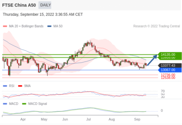 备选策略: 如跌破 13067 ,FTSE China A50 index 目标方向定在 12736 和 12538 。