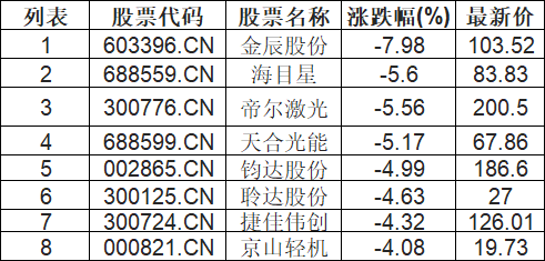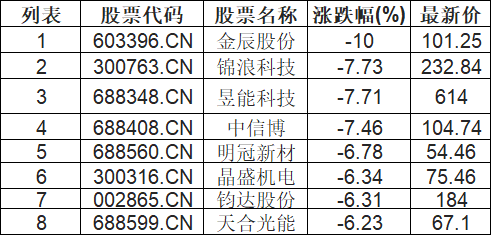 光伏设备板块下挫,金辰股份(603396.CN)跌10.0%