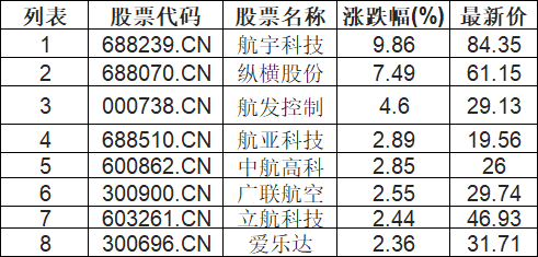 航天航空板块拉升,航宇科技(688239.CN)涨9.86%