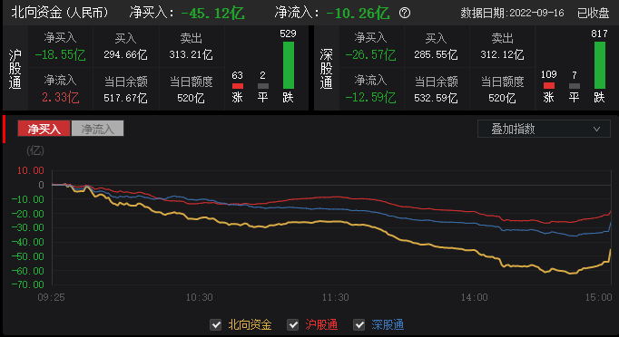 北向资金净流出超60亿元,其中沪股通净流出25亿元,深股通净流出近35亿元。