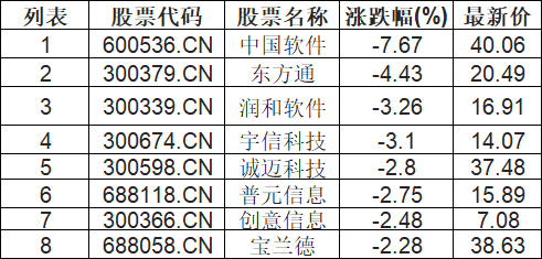 华为欧拉板块下挫,中国软件(600536.CN)跌7.67%