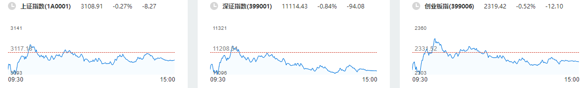 今日上市的新股联动科技表现强势,截至收盘涨幅近40%,该股发行价高达96.58元,盘中一度冲高至140元,中一签最高可赚超2万元。从个股看,两市上涨1554家,下跌3128家,131家涨幅持平。两市共40股涨停,共8股跌停。截至收盘,沪指跌0.27%报3108.91点,成交2700亿元;深成指跌0.84%报11114.43点,成交3672亿元。创业板指下跌0.52%,报2319.42点。