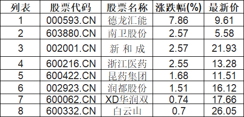 青蒿素板块拉升,德龙汇能(000593.CN)涨7.86%