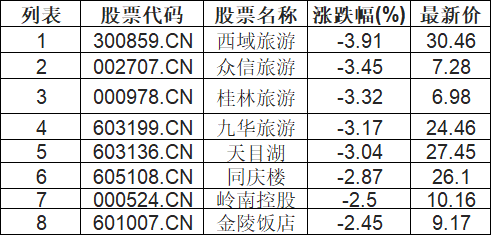 旅游酒店板块低开,西域旅游(300859.CN)跌3.91%