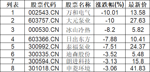 空气能热泵板块下挫,万和电气(002543.CN)跌10.01%