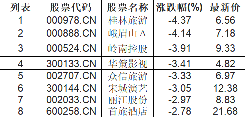 在线旅游板块下挫,桂林旅游(000978.CN)跌4.37%