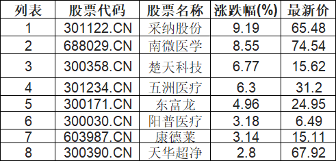 注射器概念板块拉升,采纳股份(301122.CN)涨9.19%