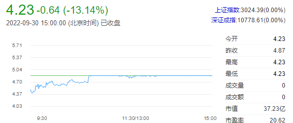 9月30日大盘全天高开后震荡回落,沪指再创阶段调整新低,创业板指领跌,月累计下跌超10%。受节前效应影响,两市交投低迷,成交金额跌破6000亿,续创23个月新低。
