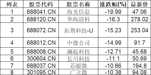 半导体板块下挫,海光信息(688041.CN)跌19.99%