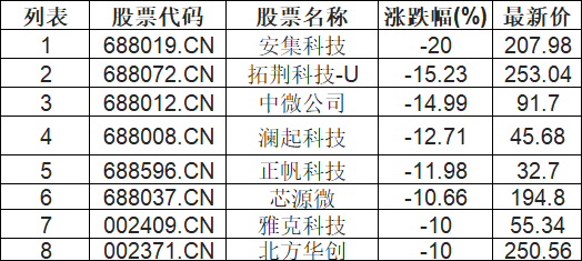 中芯概念板块下挫,安集科技(688019.CN)跌20.0%