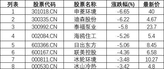 空气能热泵板块下挫,申菱环境(301018.CN)跌6.65%