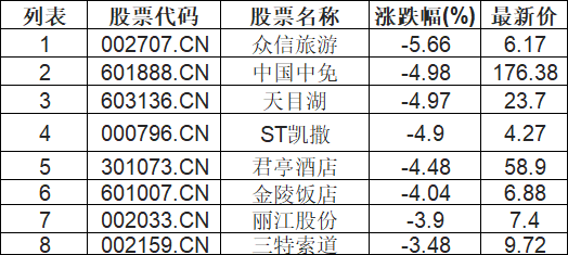 旅游酒店板块下挫,众信旅游(002707.CN)跌5.66%