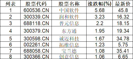 华为欧拉板块拉升,中国软件(600536.CN)涨5.68%