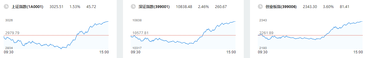 A股三大股指10月12日集体小幅低开。早盘两市震荡走低,上证50指数跌近2%创2019年2月以来新低。指数午后回升,午后一度跌超1.2%的创业板指率先翻红,沪指、深成指而后也相继翻红,沪指更是一举收复3000点关口。至收盘时,创指涨幅创逾4个月最大。从盘面上看,TMT板块全线爆发,计算机板块掀涨停潮;新能源赛道仍是情绪核心。至10月12日收盘,上证综指涨1.53%,报3025.51点;科创50指数涨3.6%,报924.91点;深证成指涨2.46%,报10838.48点;创业板指涨3.6%,报2343.3点。