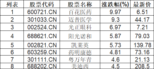 医疗服务板块拉升,百花医药(600721.CN)涨9.97%