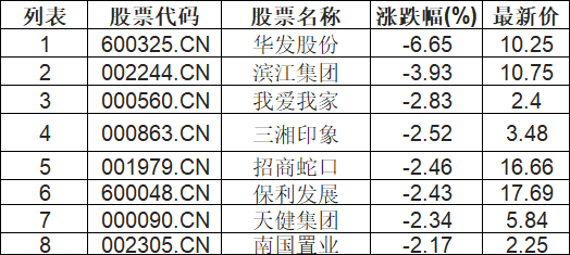租售同权板块下挫,华发股份(600325.CN)跌6.65%