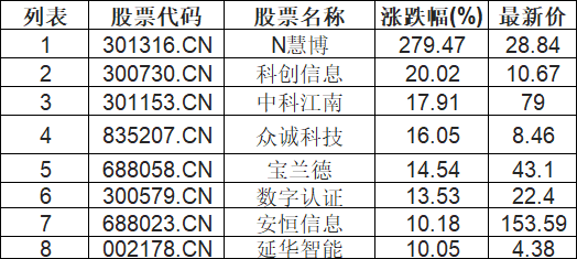 软件开发板块拉升,N慧博(301316.CN)涨279.47%