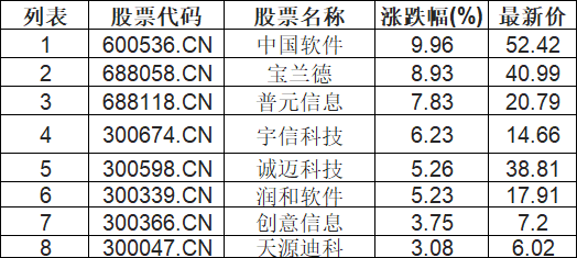 华为欧拉板块拉升,中国软件(600536.CN)涨9.96%